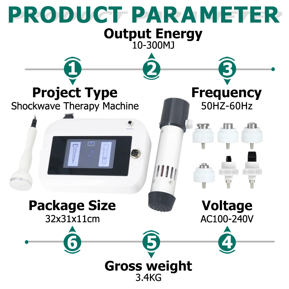Shockwave Therapy Machine 10Heads Shock Wave Body Relaxation Massage 300MJ For ED Treatment New Ultrasonic Pain Relief Massage