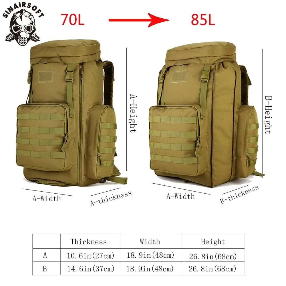 SINAIRSOFT 70-85l Large Capacity Tactical Backpack Molle Hiking Rucksack Field Survival Bag
