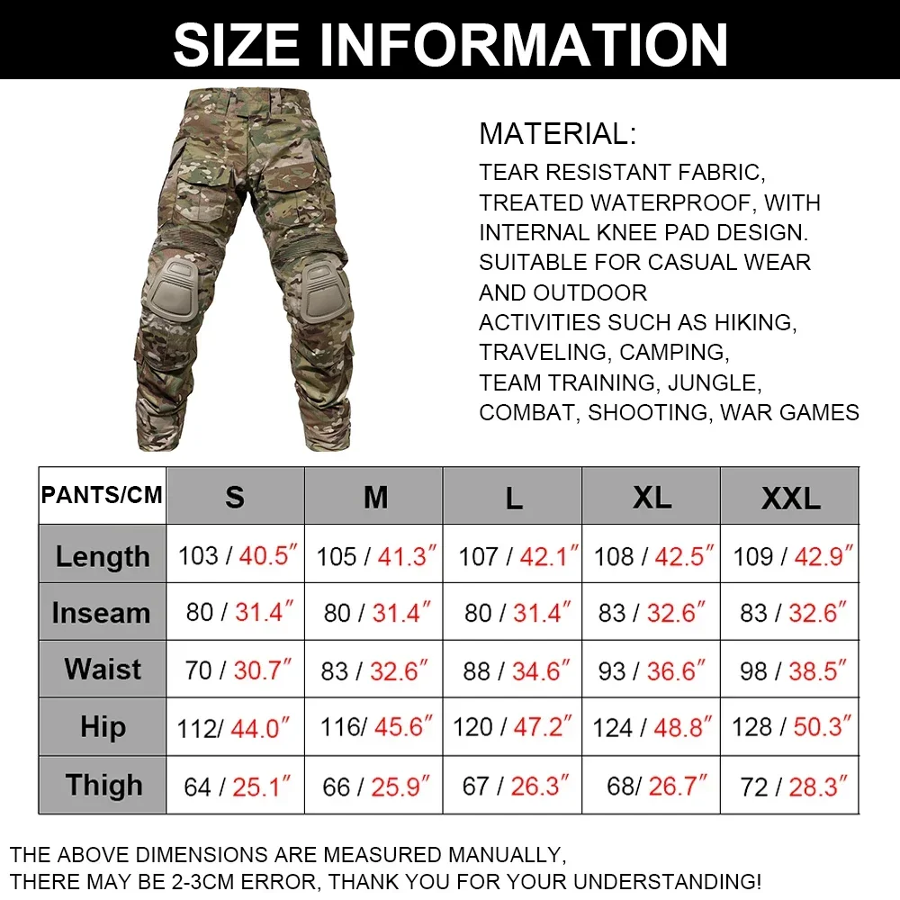 SINAIRSOFT G3 Combat Pants with Knee Pads Tactico Trousers MC gen3 Outdoor Hunting Camouflage