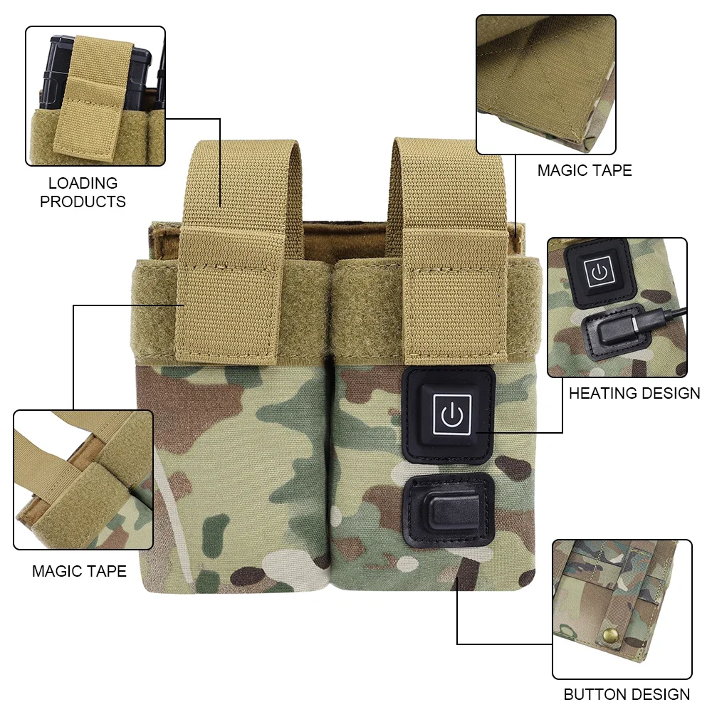 SINAIRSOFT M4 Tactical Magazine Pouch Warmer MOLLE Double Mag Pouch USB Charging Mag Bag Constant Temperature Function