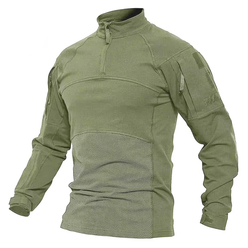 SINAIRSOFT Men’s Camouflage Tactical Combat Shirt Stretch Cotton 1/4 Zipper Uniform Shirts Long Sleeve Camo T Shirt