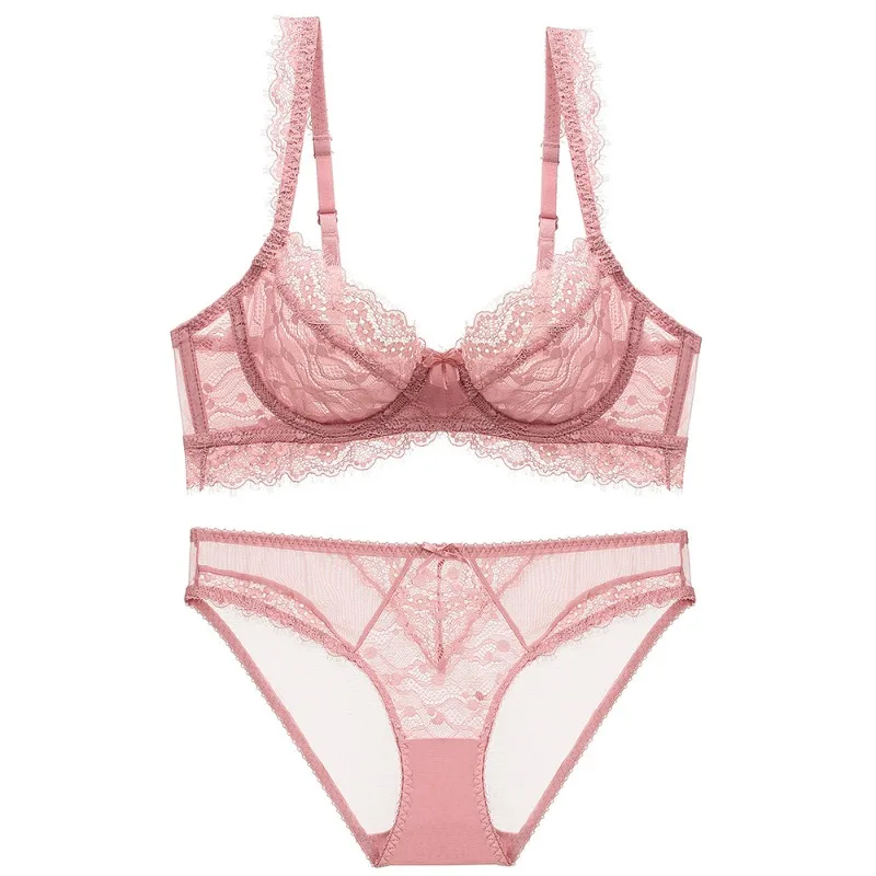 Solid Sweet Ultra-thin Transparent Lace Underwear Summer See Though Thin Cotton Cup Bra Women Sexy Large Sized Lingerie Everyday