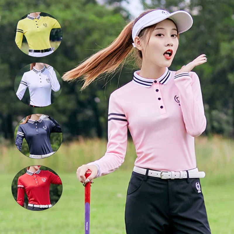 SSV Autumn Women Lapel Long Sleeved Golf Shirts Slim Wear-resistant Striped Tops High-quality Leisure T-Shirt Sports Golf Wear