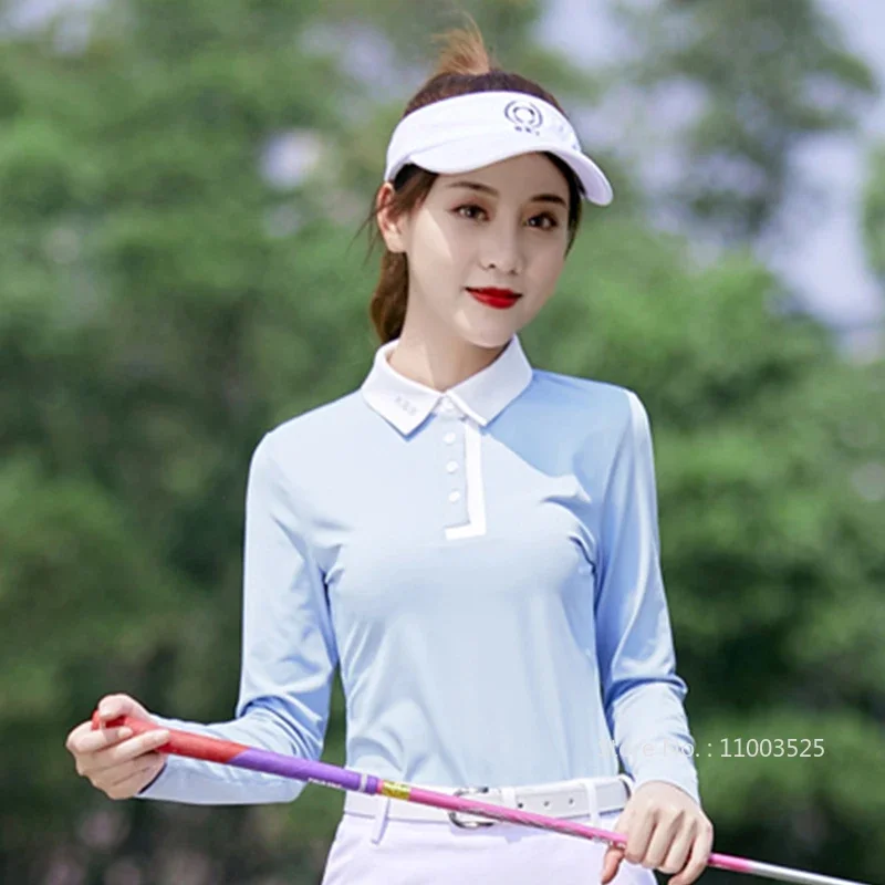 SSV Golf Elastic Long Sleeve Shirt Women Polo Neck Golf T-shirt Lady Golf Pencil Skort Ruffle High Waist Skorts Tennis Clothing