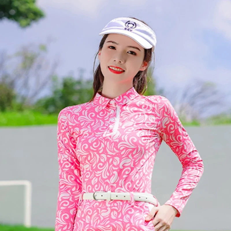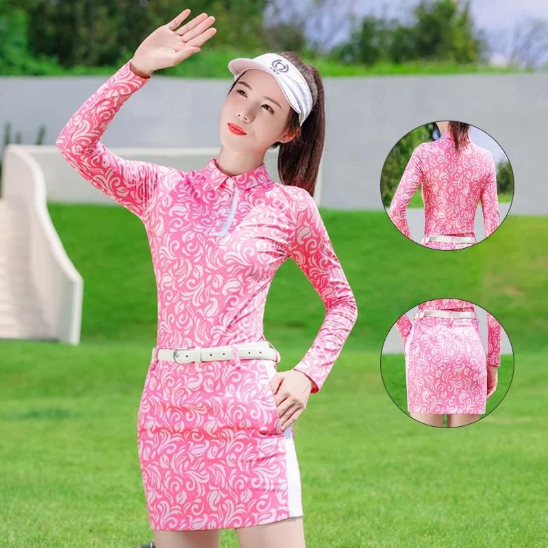 SSV Women Long Sleeve Golf Tops Print Golf Lady T-shirt Sports Short Skirts Korean Slim Pencil Skirt A-line Elegant Sportswear