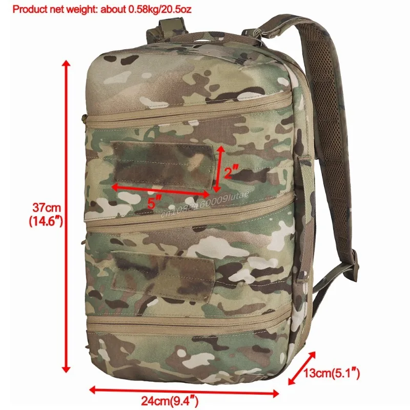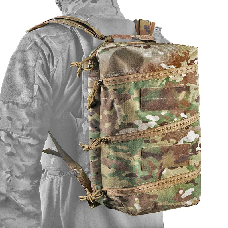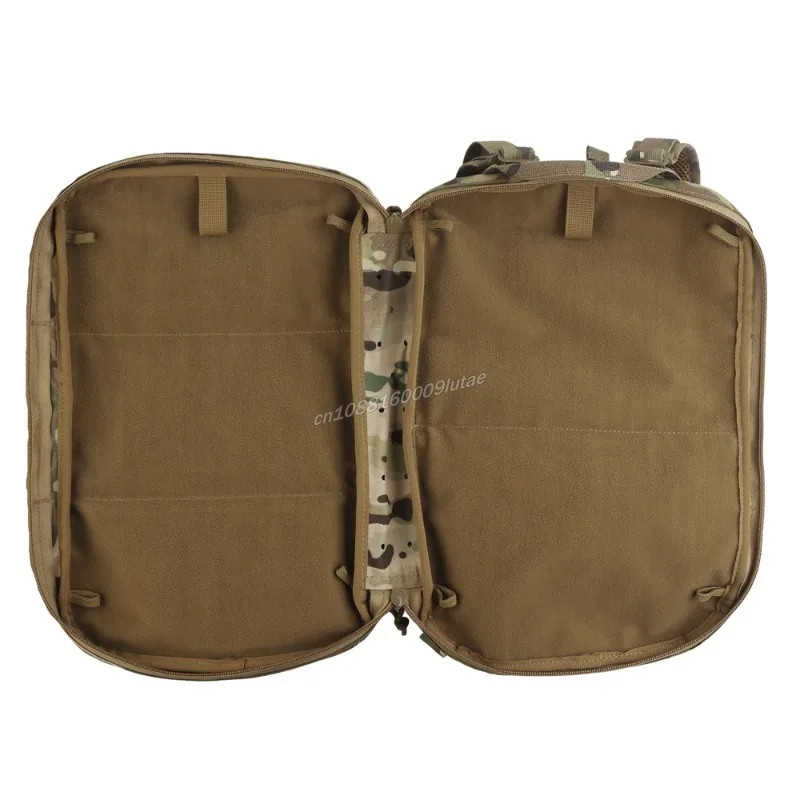 1. Users can classify and organize items in three layers of storage pockets on the front. Features two 2×5-inch loop panels on the front for attaching custom morale patches.