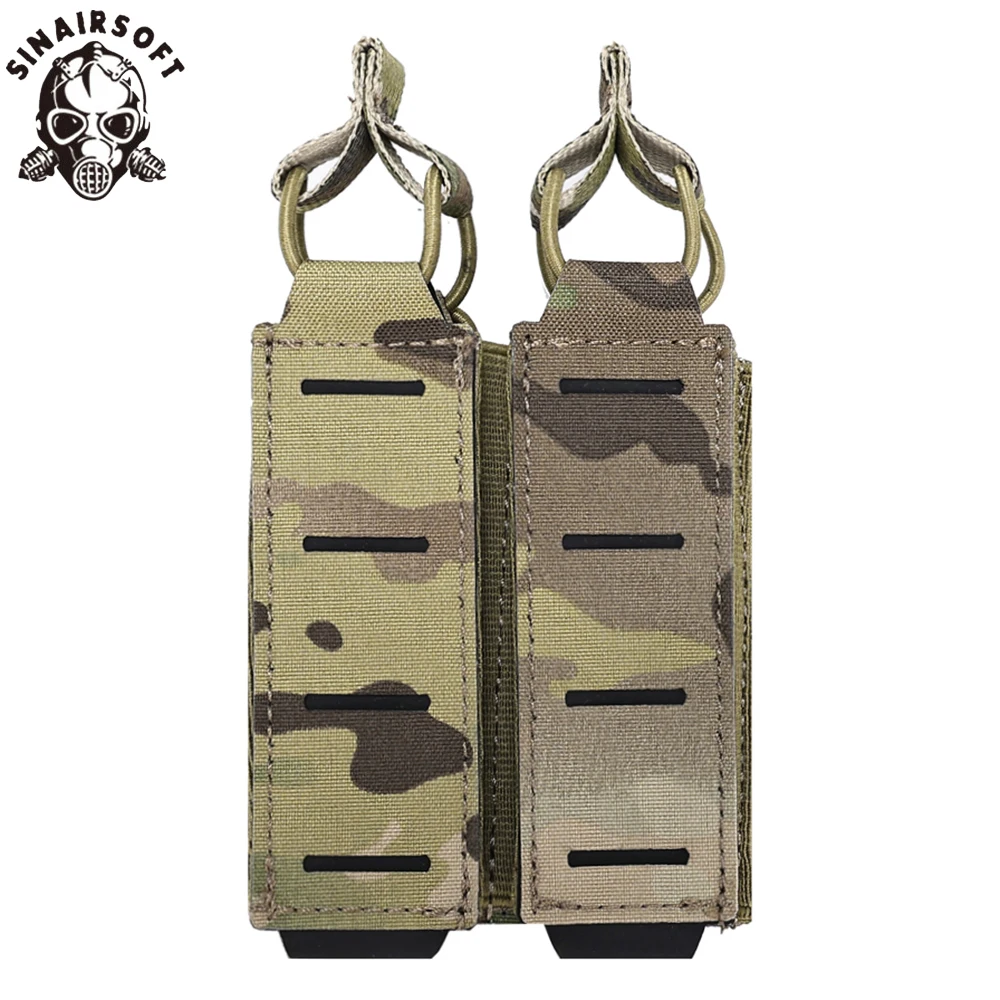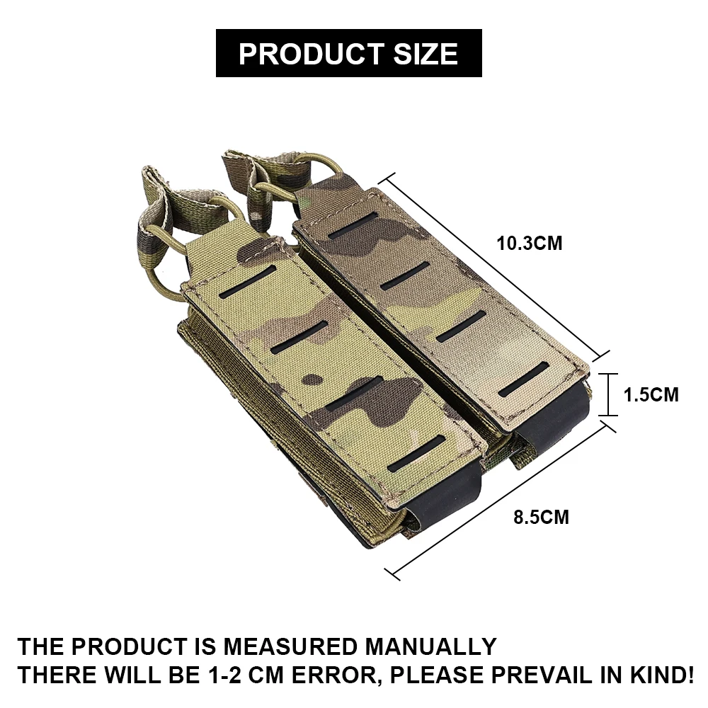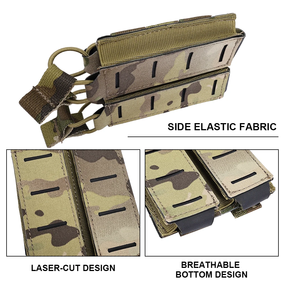 Tactical Double Pistol MAG Pouch 9mm Magazine Holder For Belt MOLLE Laser Cut Elastic Bungee Cord Retention Hunting