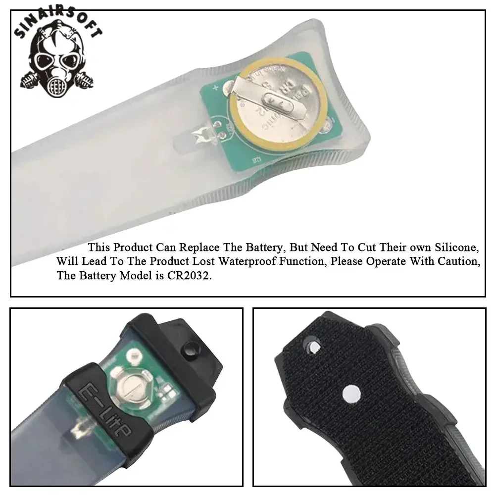 ③CR2032 Button Battery: it Can last For one Week in Steady on Mode And one Month in Flashing Mode (The Actual Time Will Vary According To The Ambient Temperature).The Battery Can Be Replaced By itself After Use, But it Needs To Be Replaced By Cutting The Silicone, So As To Lose The Waterproof Wrap And Pay Attention To The Edge of The Battery To Avoid The Contact Between Positive And Negative Electrodes.