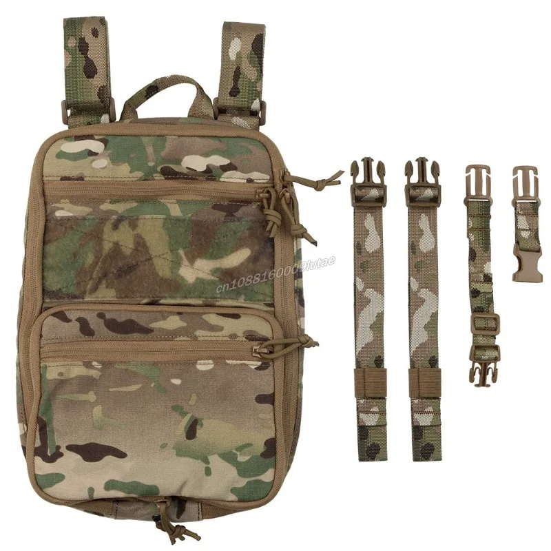 * Adjustable shoulder and chest straps allow for a customized fit, and the backpack can be used with chest rigs by replacing the harness straps with the pack straps.
