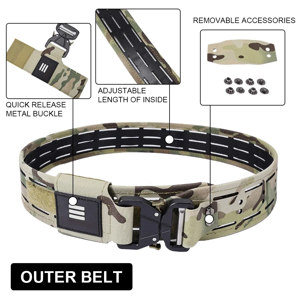 Tactical Laser-cut Curved Belt Quick Release Metal Buckle MOLLE Multi-camo Battle Belts Airsoft Hunting Clothing Accessories