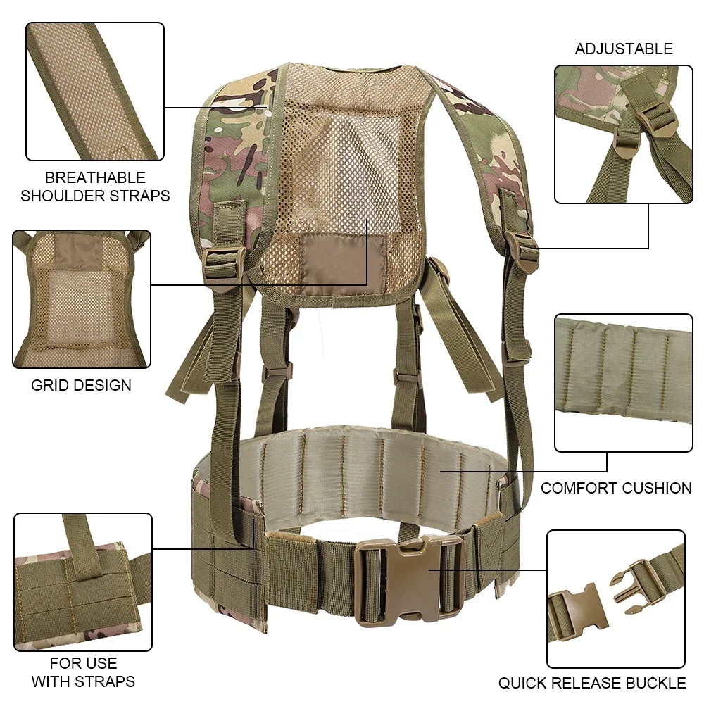 Tactical Molle Vest Waist Belt H-shaped Men Male Waist Girdle with Shoulder Strap Soft Padded Hunting Airsoft Gear Adjustable