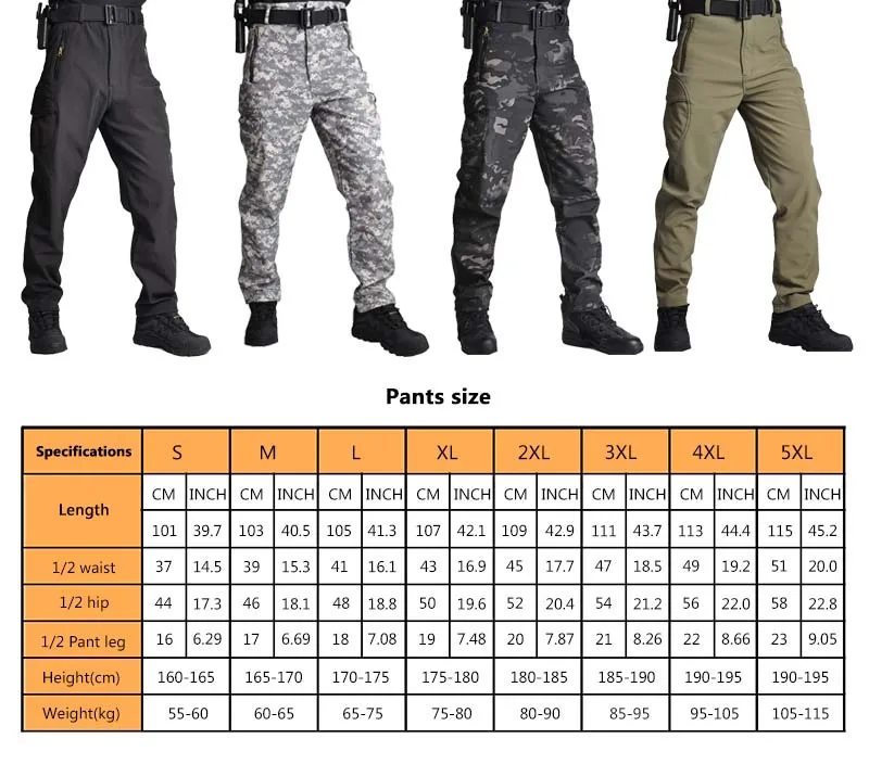 Tactical Pants Fleece Cargo Pants Men Clothing Outdoor Soft Shell Fleece Camo Pant Casual Trousers Warm Unisex Waterproof