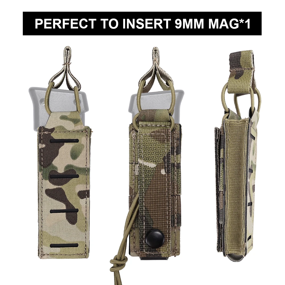 Tactical Pistol Magazine Pouch 9mm Extended Single Mag Pouch Molle Holster Hunting Flashlight Torch Holder Airsoft Accessories