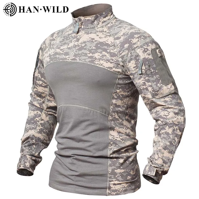 Tactical Shirts Combat Shirt Men Clothing Elasticity Man Shirt wear-resisting Camo T Shirt Long Shirt Hunting Clothes