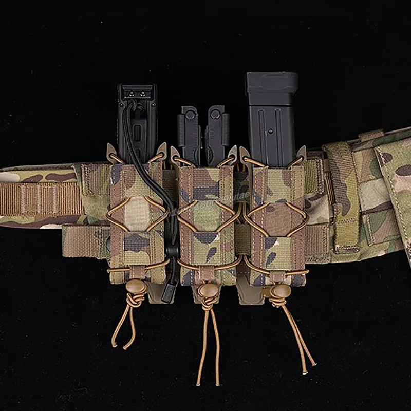 Tiger Type Triple 9mm Mag Pouch Quick Pull Tactical Magazine Bag Pistol Flashlight Torch Holder Hunting Carrier Belt Accessories