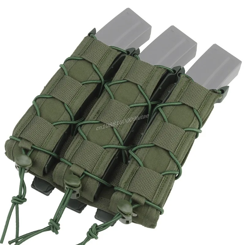 Tiger Type Triple 9mm Magazine Pouch Submachine Gun Long Mag Bag MOLLE Malice Clip Attach To Tactical Vest Belt For MP5 MP7 UMP