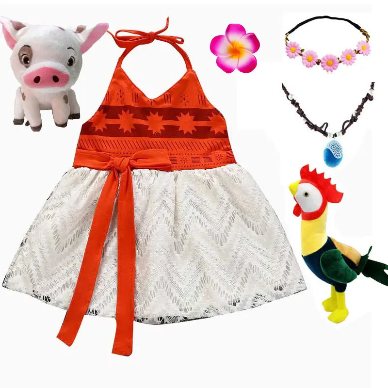 Moana New Dress Girls Princess Clothes Kids Dress Up Necklace Pig Chick Children Carnival Halloween...