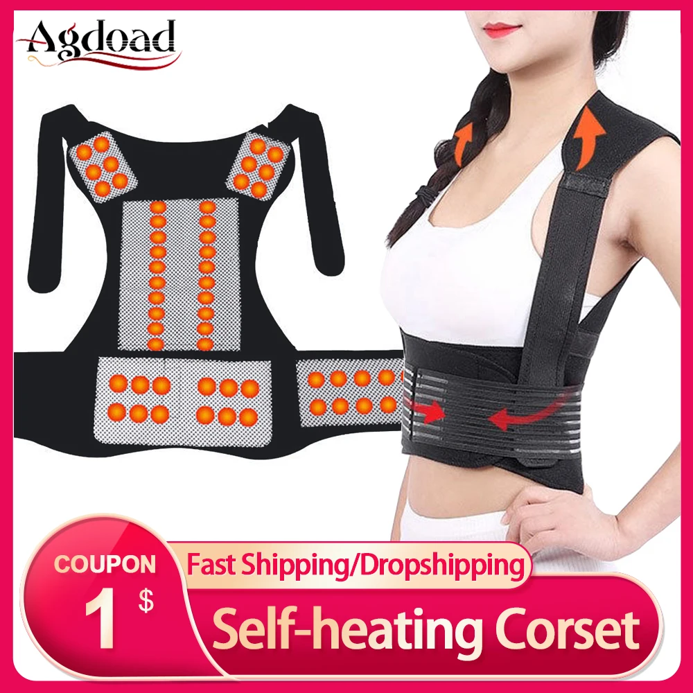 Tourmaline Self-heating Back Brace Lumbar Correction Belt Magnetic Therapy Shoulder Brace Support Back Posture Corrector Corset
