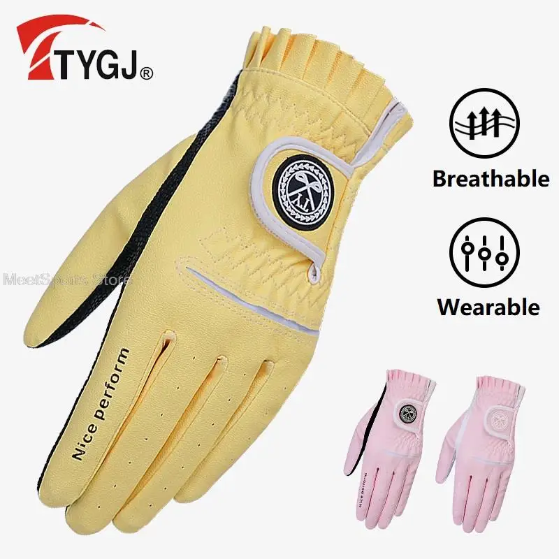 Ttygj 1 Pair Golf Gloves Woman PU Leather Soft Gloves Ladies Anti-Slip Granules Sports Mittens Elegant Right Left Hand Golf Aids