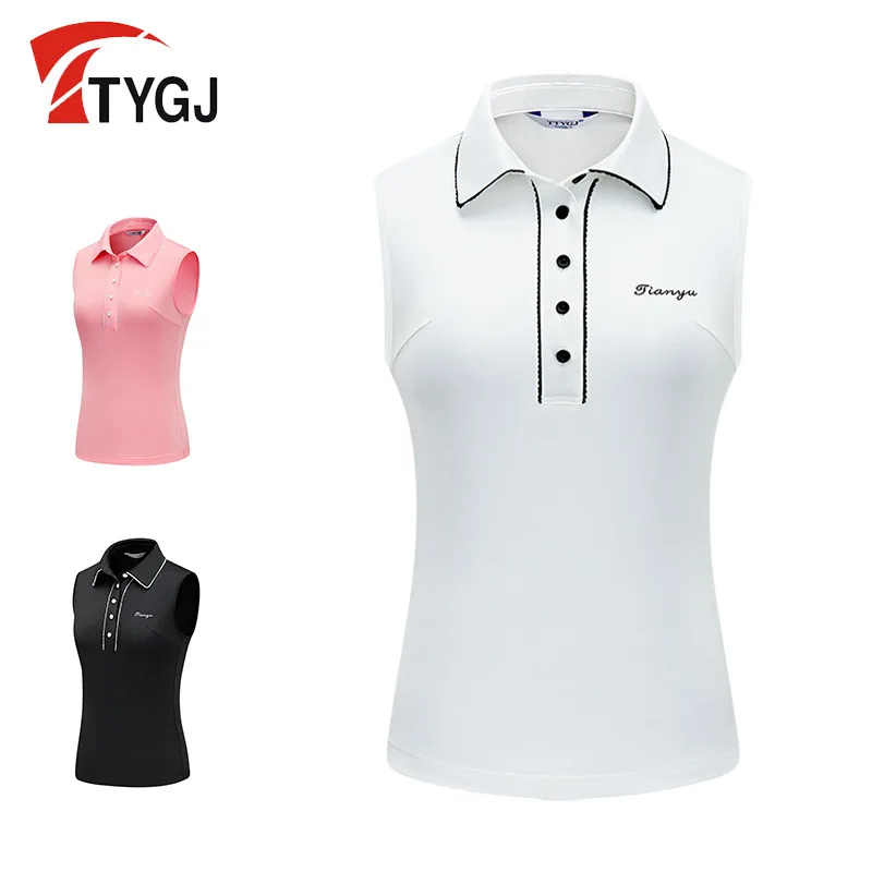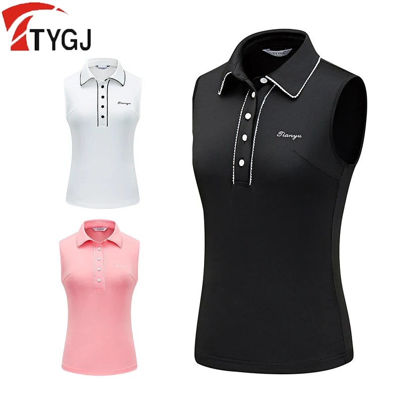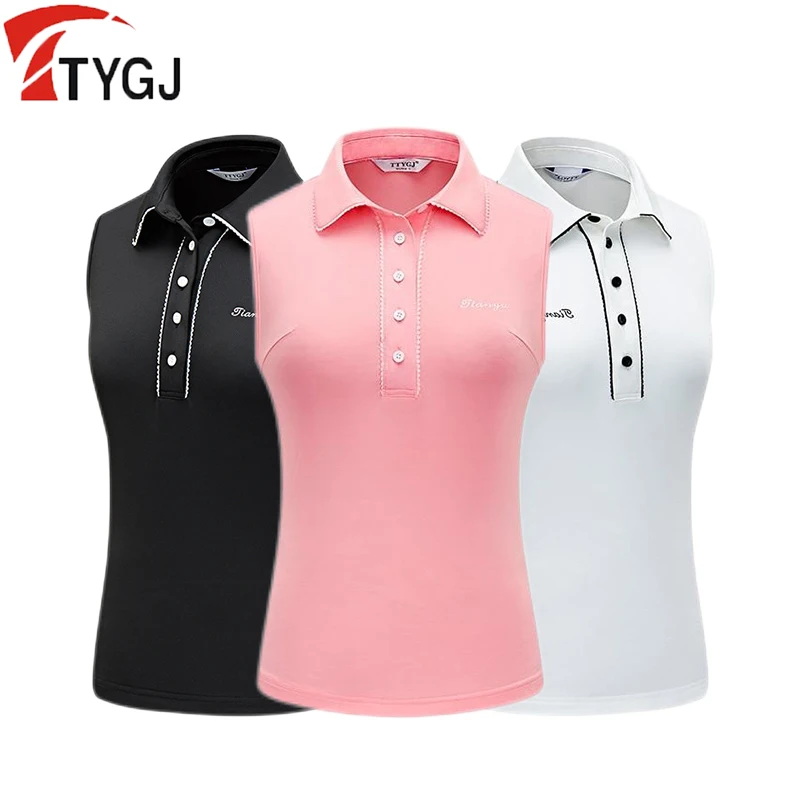 TTYGJ Summer Quick-dry T-shirts Golf Tank Tops Women Golf Polo Vest Shirts Ladies Sleeveless Sports Tops Turn-down Collar S-XL