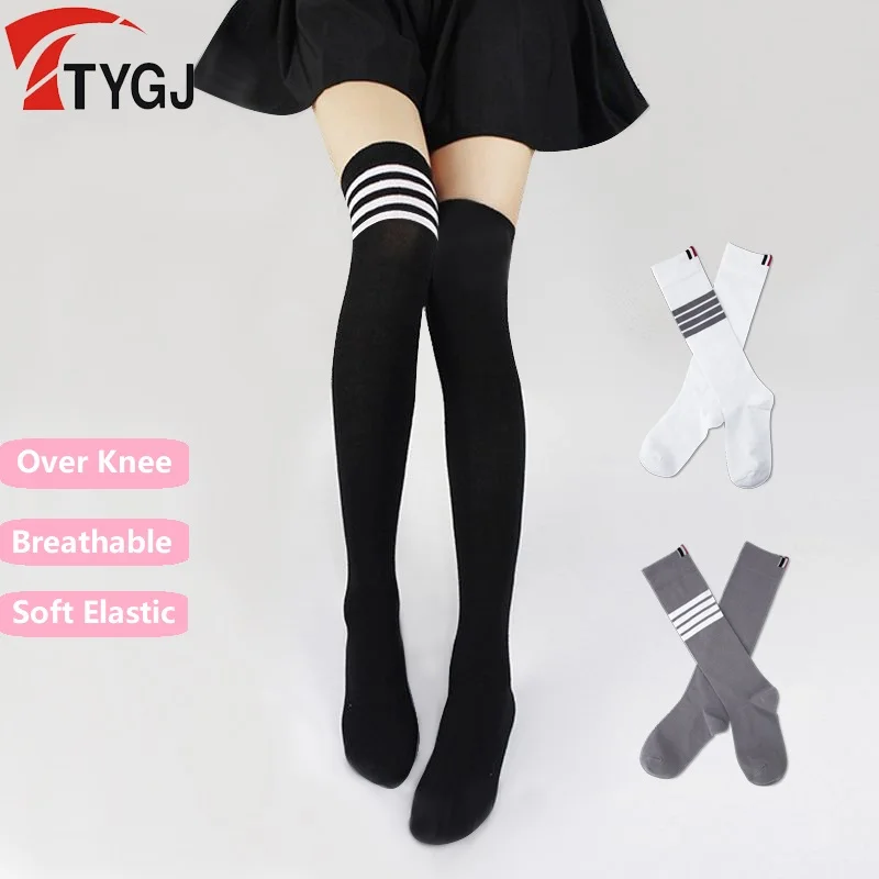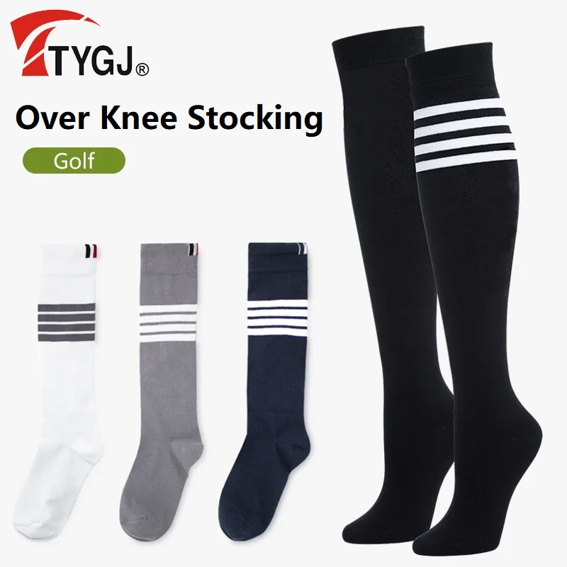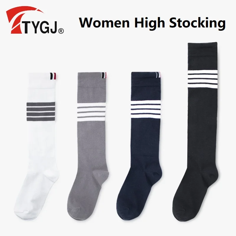 TTYGJ Outdoor Cotton Sports Socks Lady Elastic Golf Stocking Female Soft Knee-high Leg Cover Slim Stripe Socks Over Knee Legging