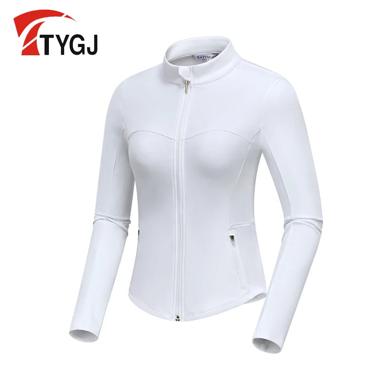 Ttygj New Sports Golf Jacket Women’s Stand-up Collar Tight Yoga Tops Ladies Slim Long-sleeved Running Pilates Fitness Coats