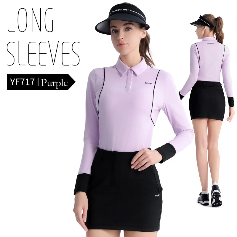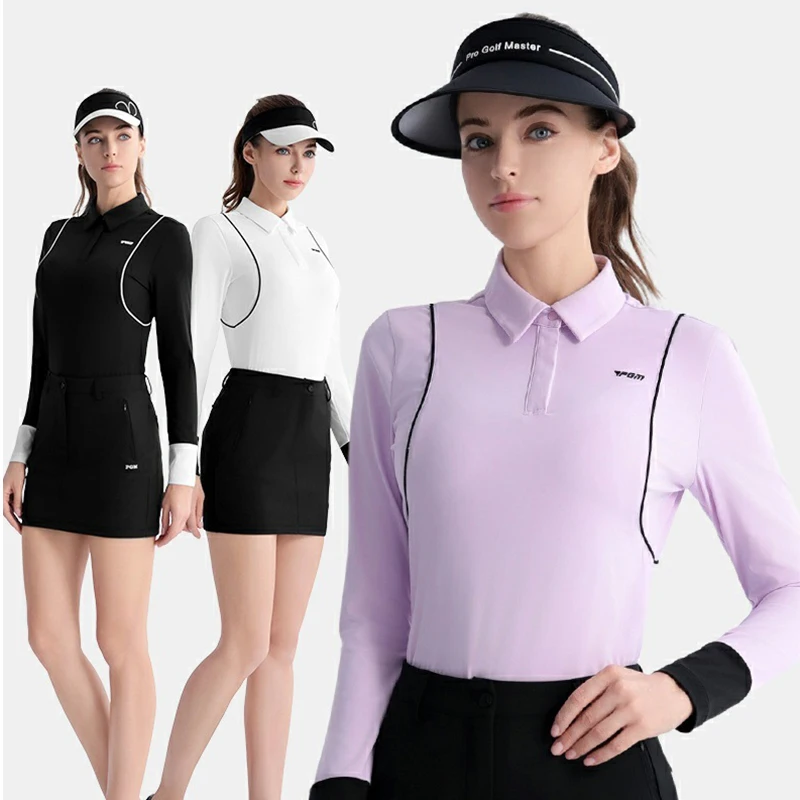 Unique Style Pgm Women’s Lapel Golf Shirts Autumn High-end Casual Tops Ladies Long Sleeve Elastic Sports T-Shirts Polo Neck