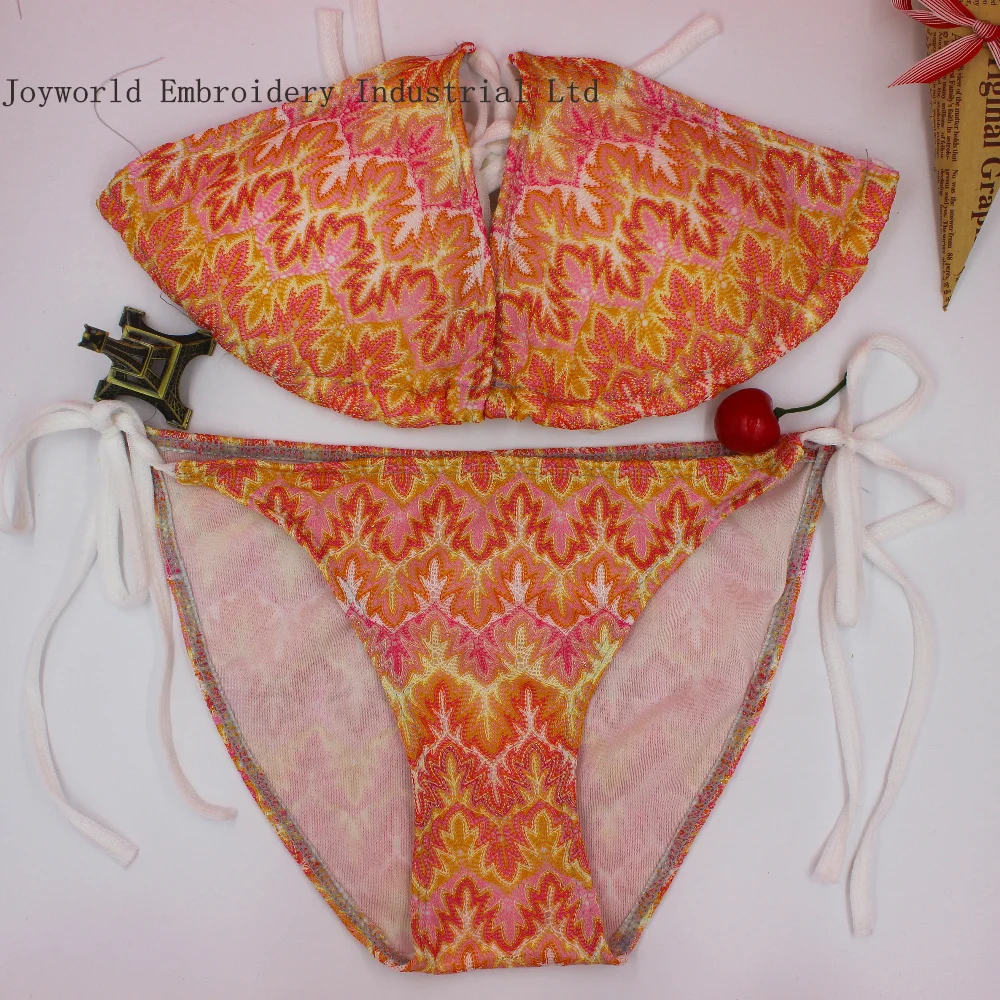 Women Bra Bikini Suits Striped Fabrics Summer Swimsuits Lingerie Free Tie Halterneck Push Up Crochet Strappy Beach Suit