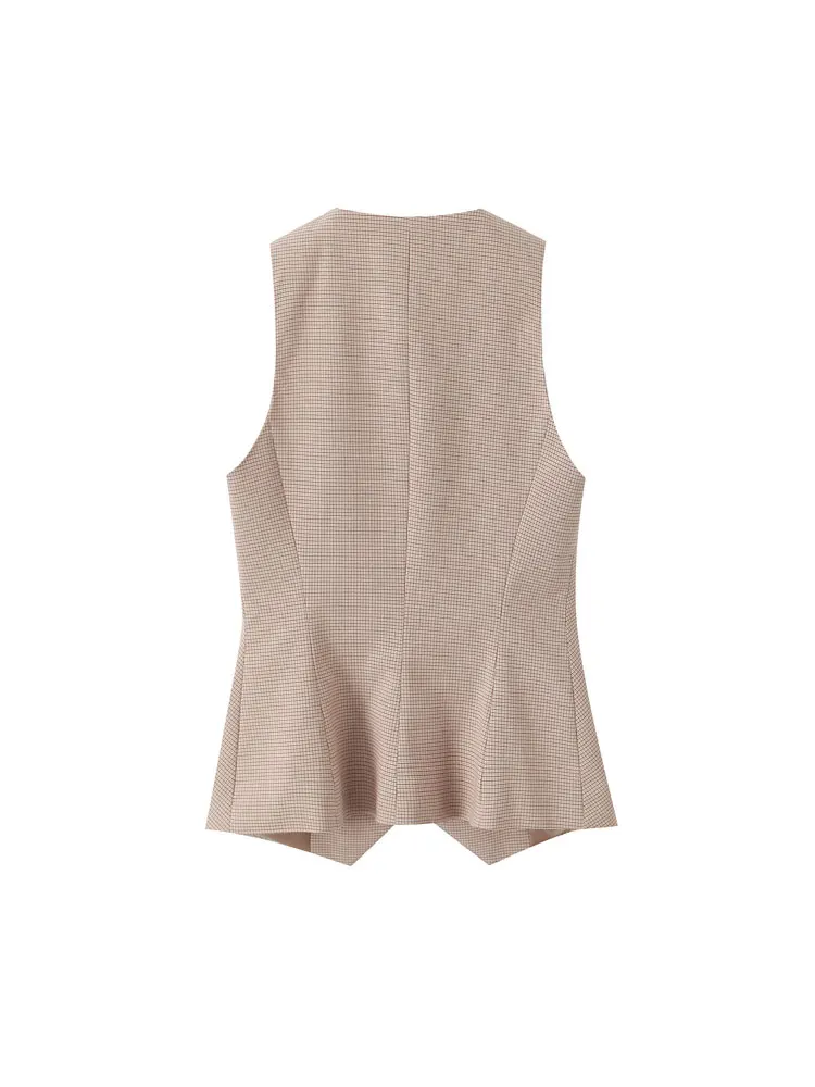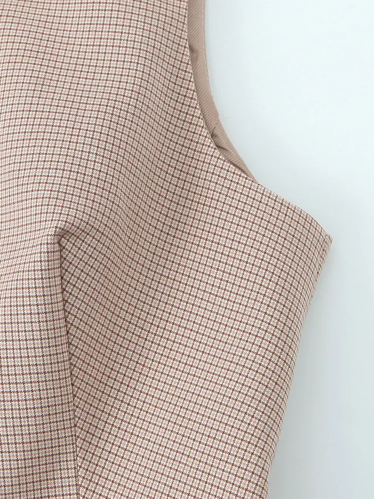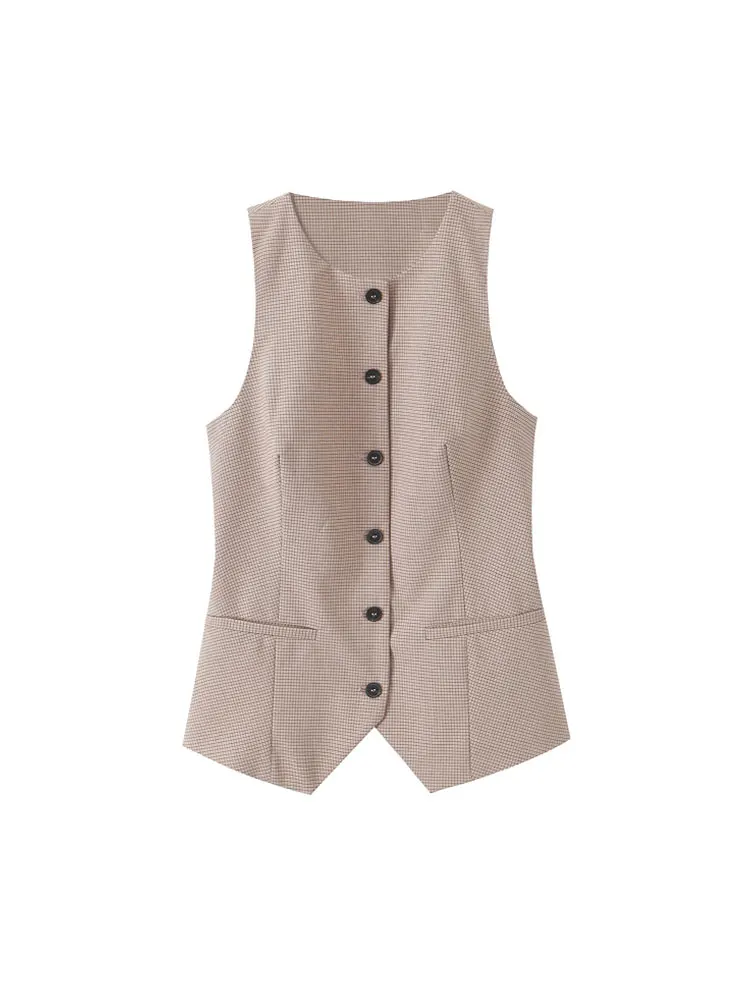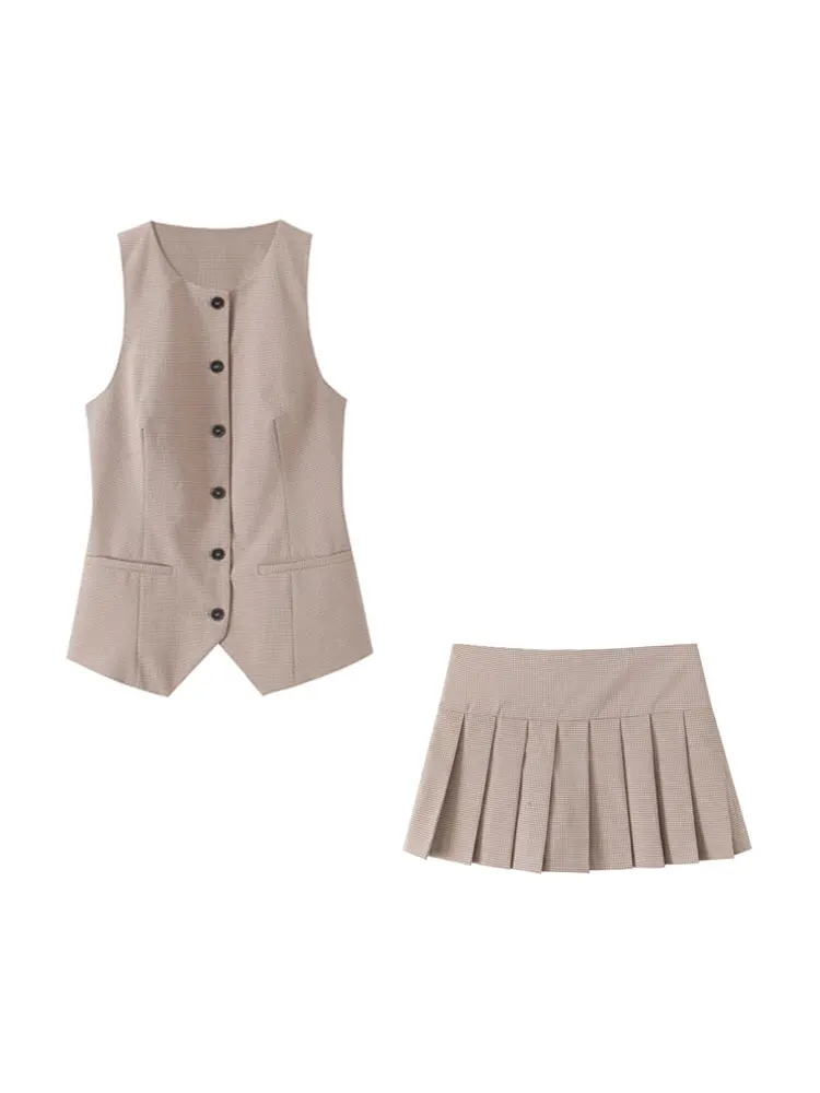 Women Fashion Fitted Round Neck Waistcoat And Mid Waist Pleated Skort Female Two Piece Sets Mujer