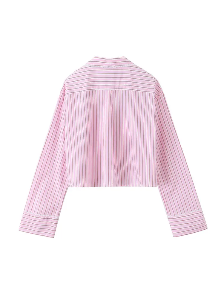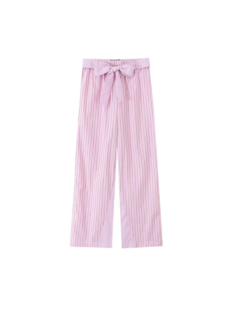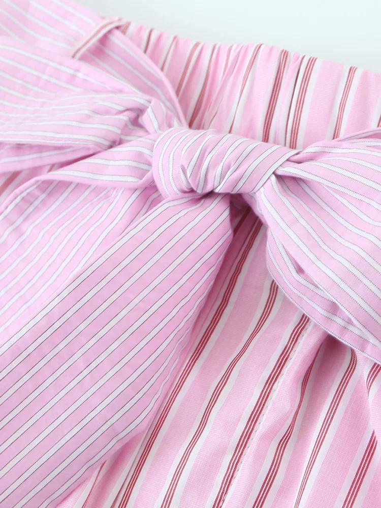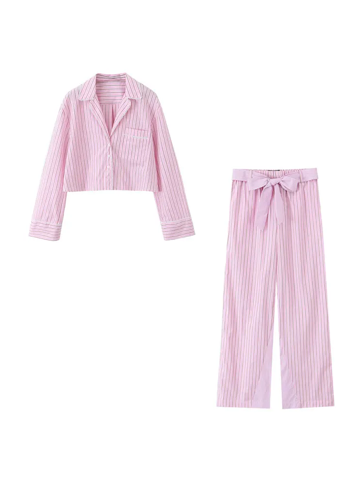 Women Fashion Striped Cropped Shirts And Mid Elasitc Waist With Belt Trousers Female Two Piece Sets Mujer