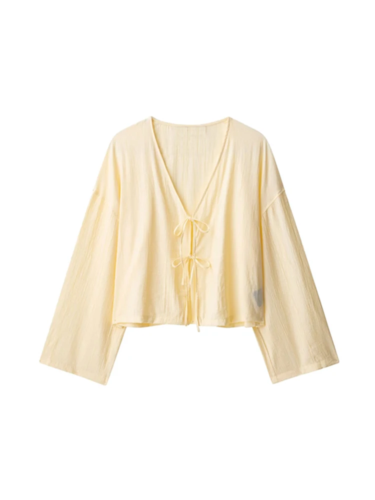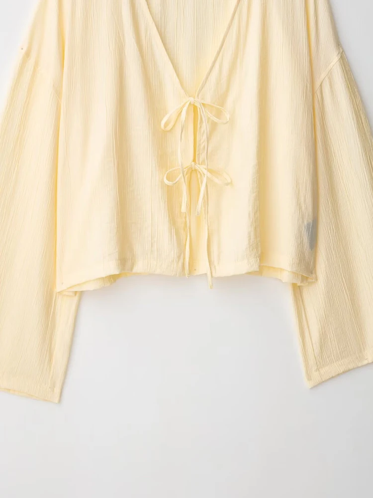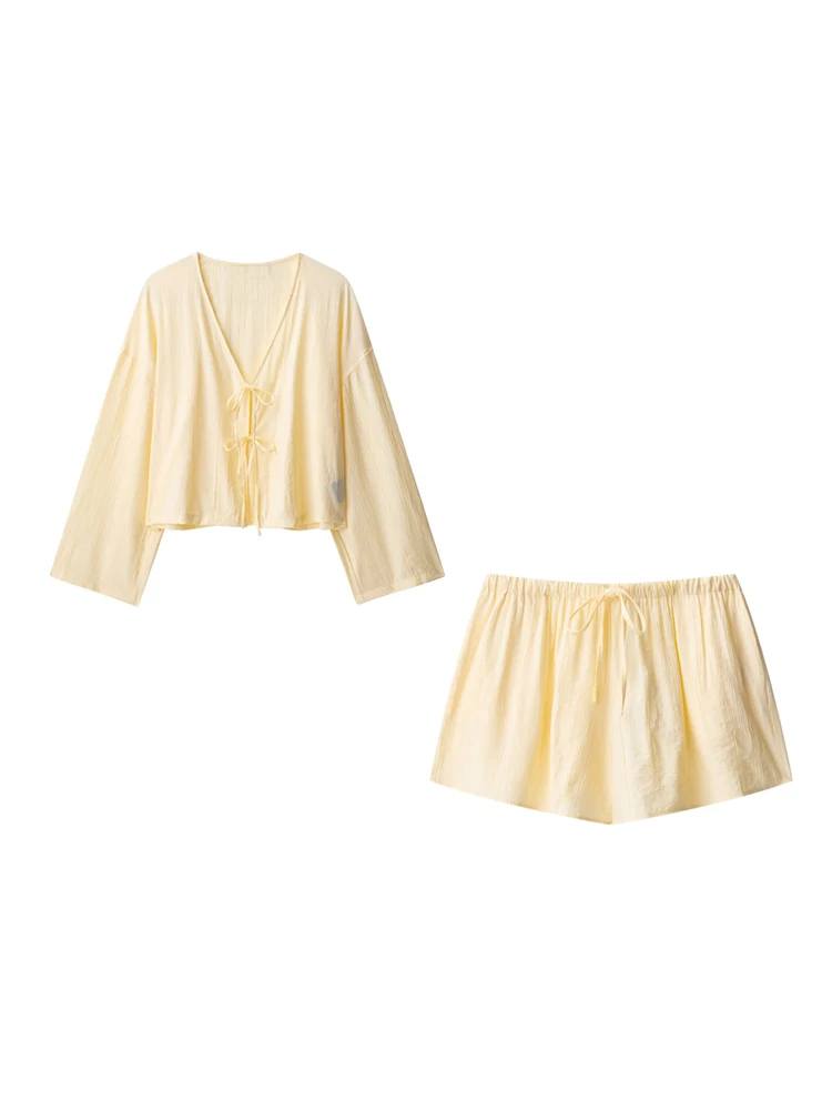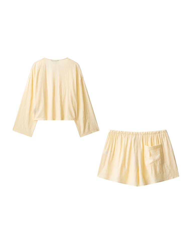 Women Fashion With Ties Textured Kimono Blouses And Mid Elastic Waist Drawstrings Shorts Female Sets Mujer