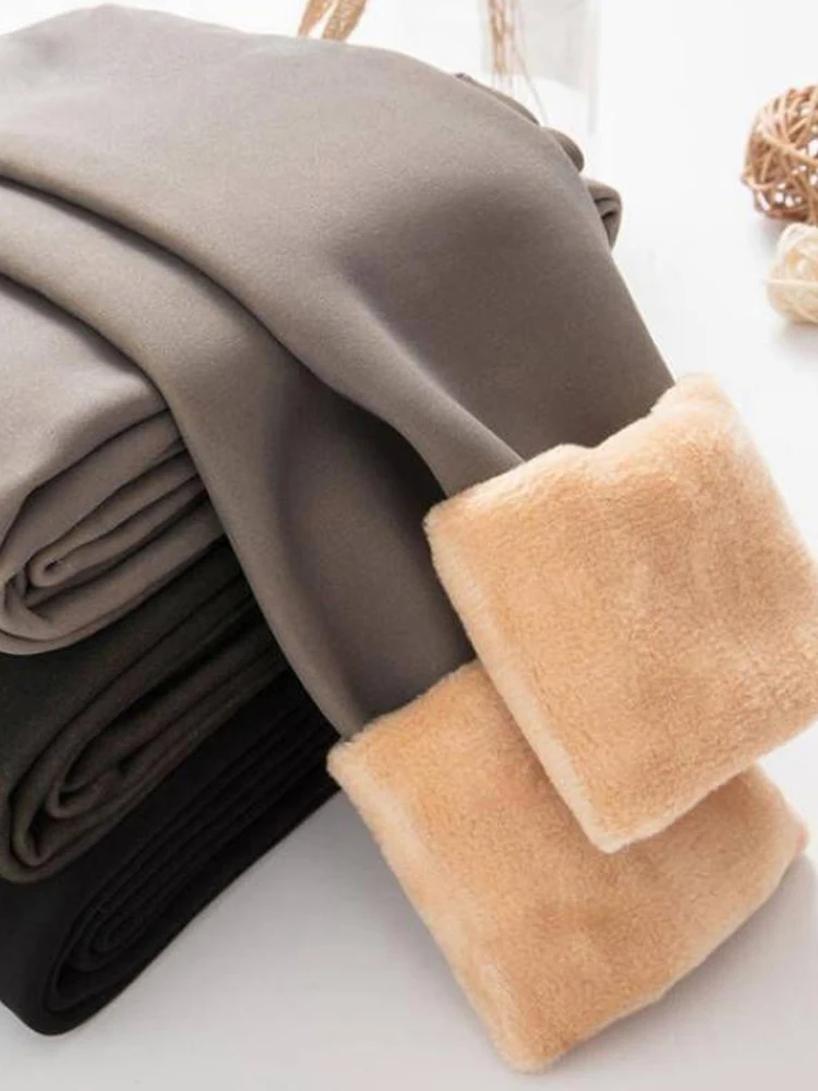Mulai:Women Pants Winter Fleece Thicken Pants Lamb Wool Outerwear Thermal High Waist Leggings Warm Slim B...