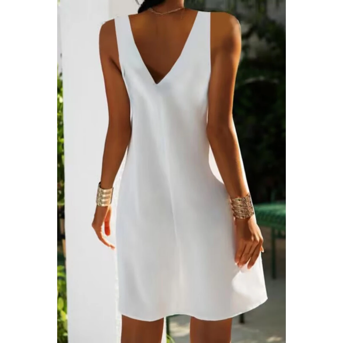 Women Solid Color V Neck Backless Sling Dress Slip Under Dress Short Dress Summer Holiday Sleeveless Women Dress