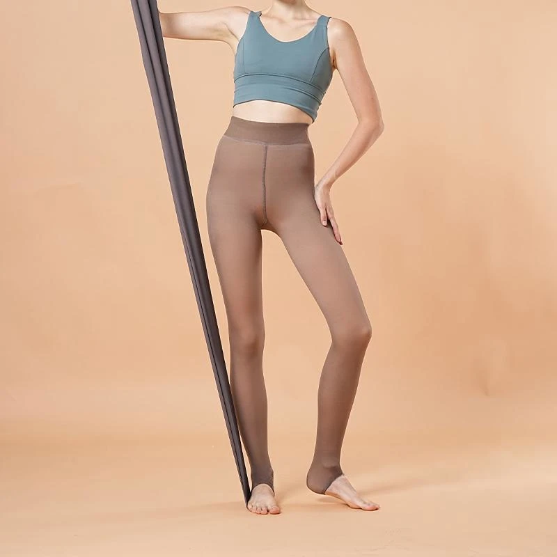 Women Thermal Leggings Translucent Sim Tight Elasticity Fleece Pantyhose Skin Effect High Waist Win...