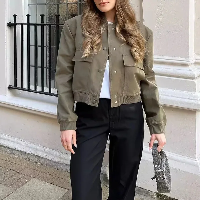 Women’s Bomber Jackets Coat Crop Outwear Armygreen Long Sleeve Coat With Pocket Solid azatrafins Woman Jacket Navy Blue Jackets