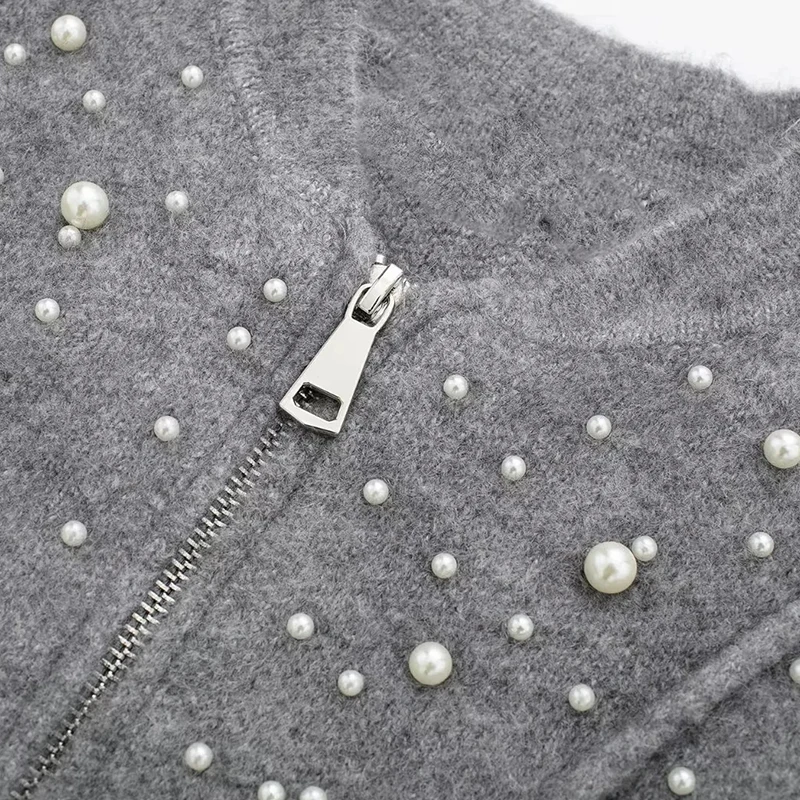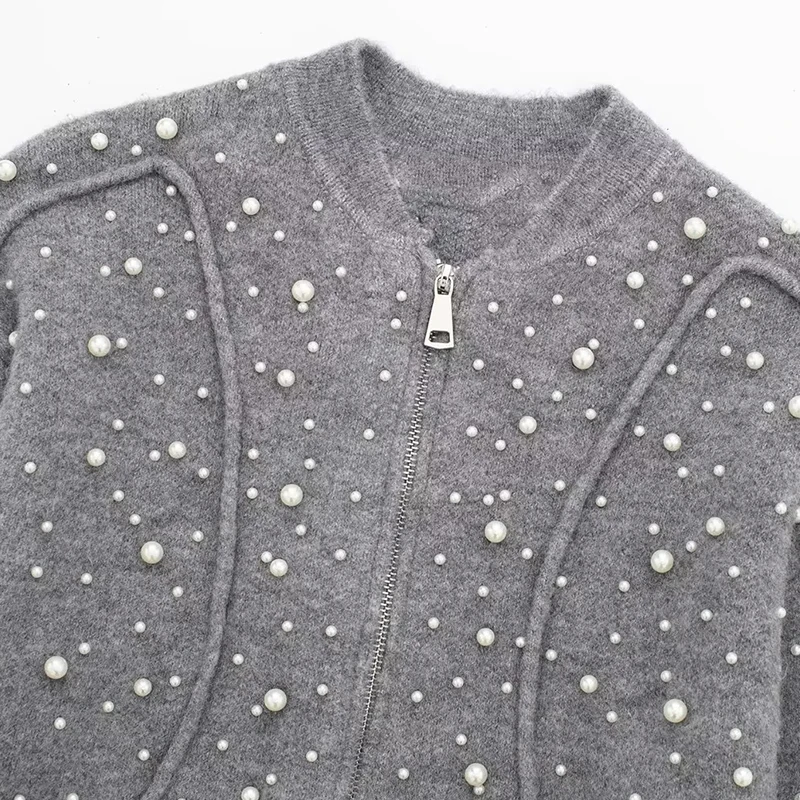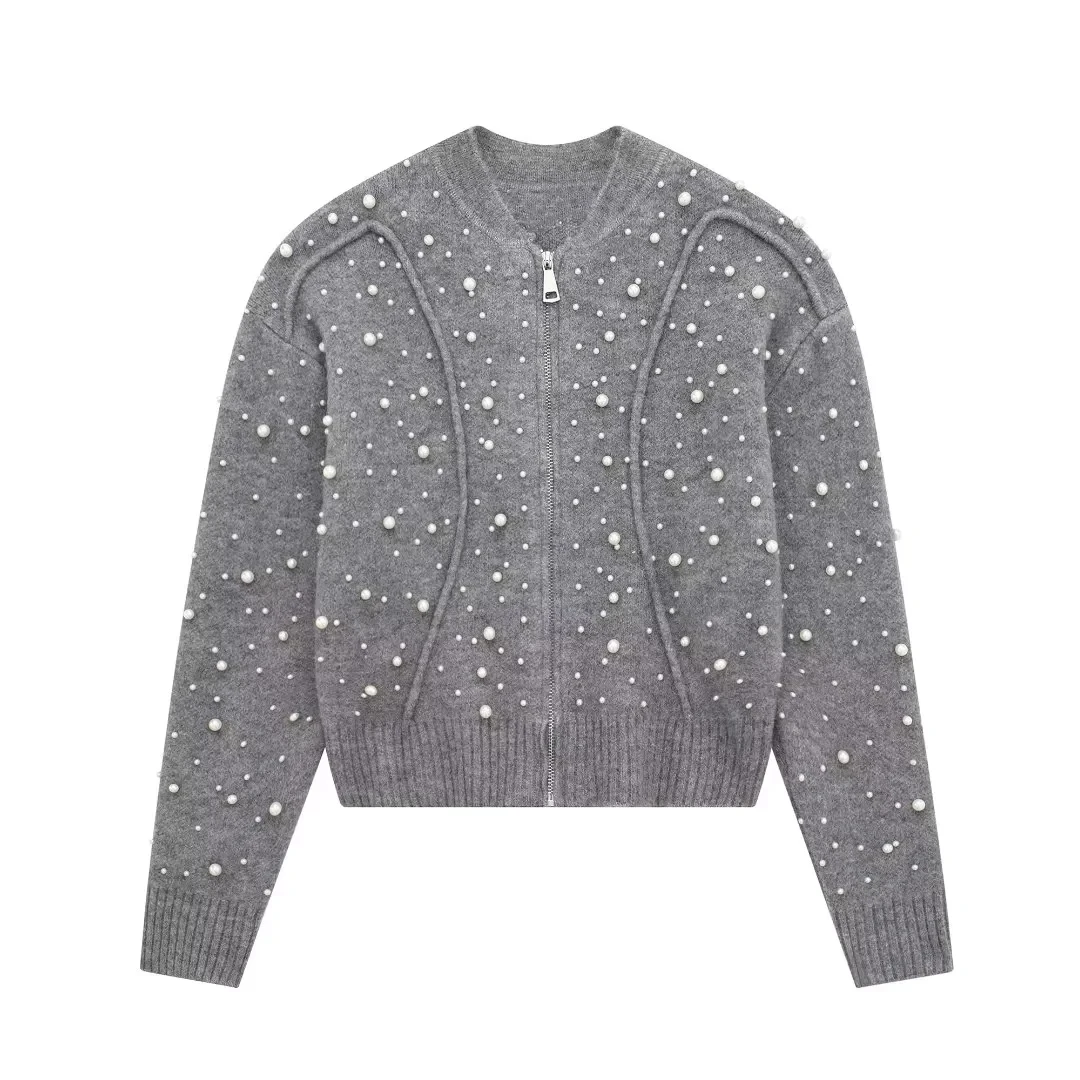 Women’s Cardigan Sweaters Pearl Knitted Jackets Knitwear Long Sleeve Jumpers Knit Jackets inszar 2023 Gray Woman Sweaters Jacket