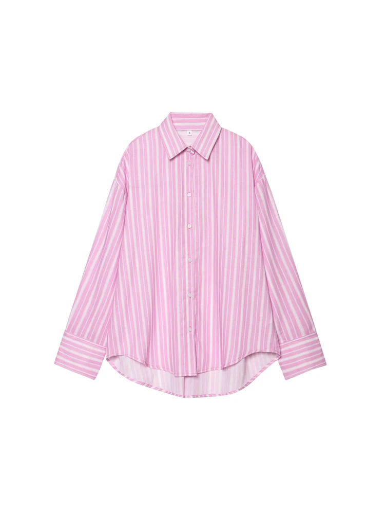 Women's Fashion Oversized Striped Shirt Set And Mid-Waist Elastic Waist Side Pockets Shorts Female Sets Outfit Mujer