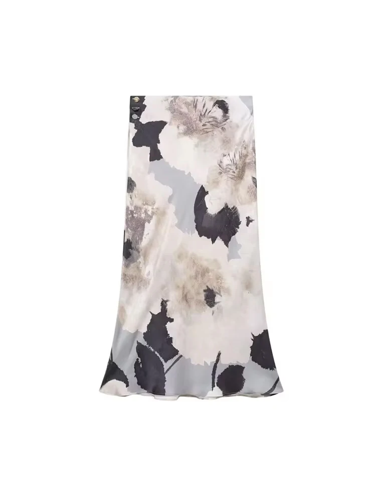 Women’s Fashion Printed Flowing Shirts And High Elastic Waist Midi Skirt Two Piece Sets Female Casual Elegant Outfit