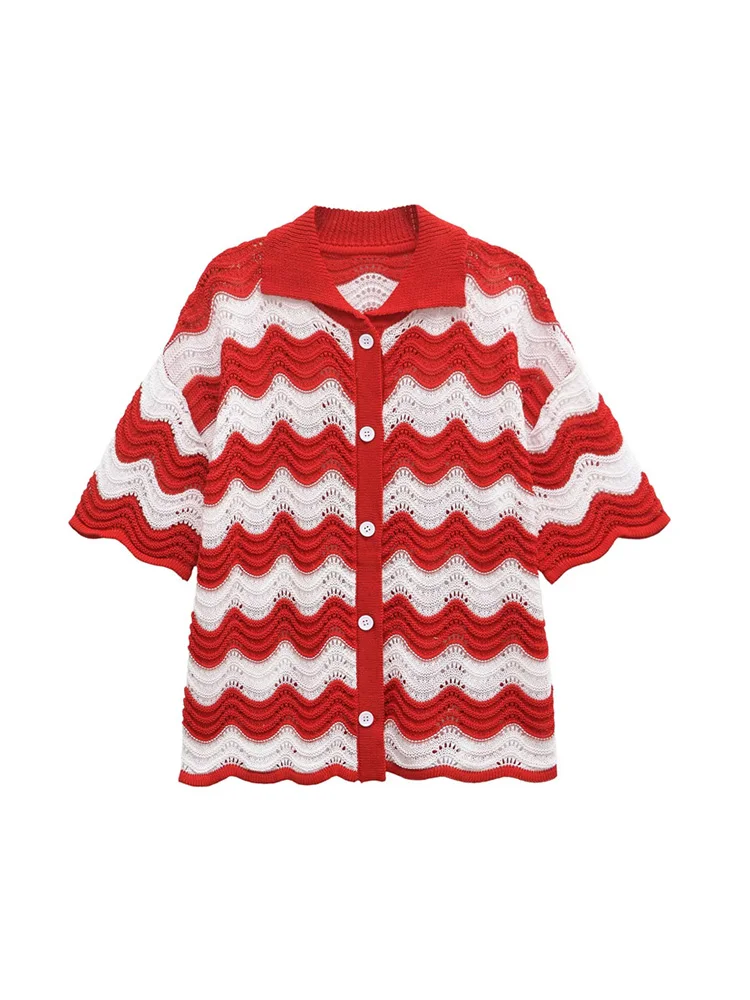 Women’s Fashion Striped Loose Knit Cardigan Sweater with Elastic Waist Shorts Two-Piece Set Casual Female Outfit