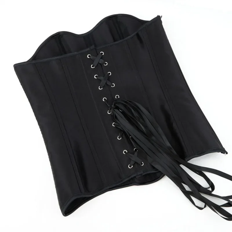Women’s Overbust Corset Tops Black Satin Gothic Lace-up Boned Bustier Shapewear Slimming Waist Shaping Korset