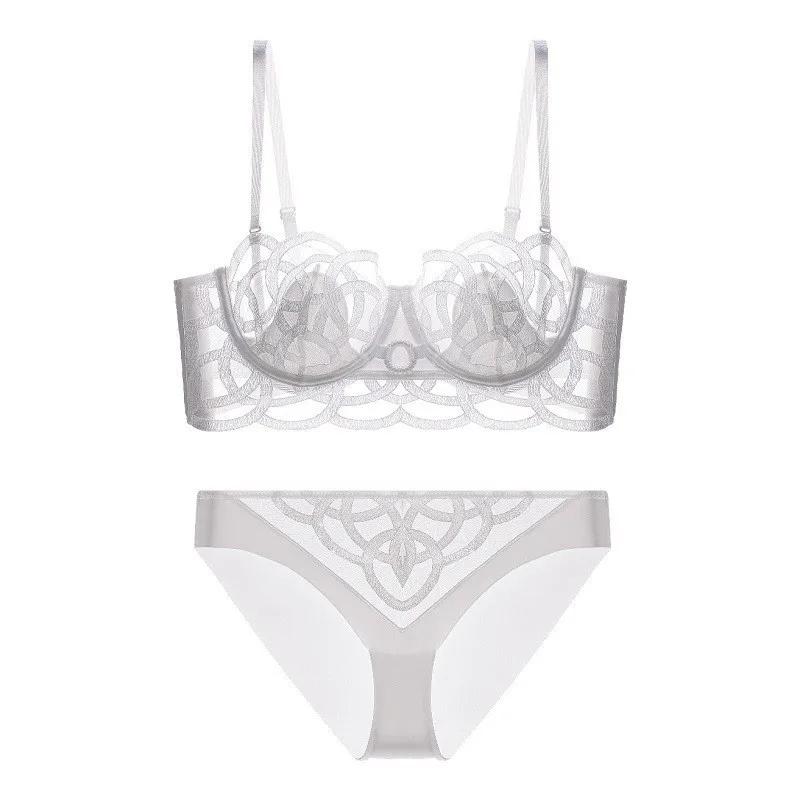 New Fashion Heavy Industry Embroidered Lingerie Set with Metal Buckle Women’s Sexy Perspectiv...