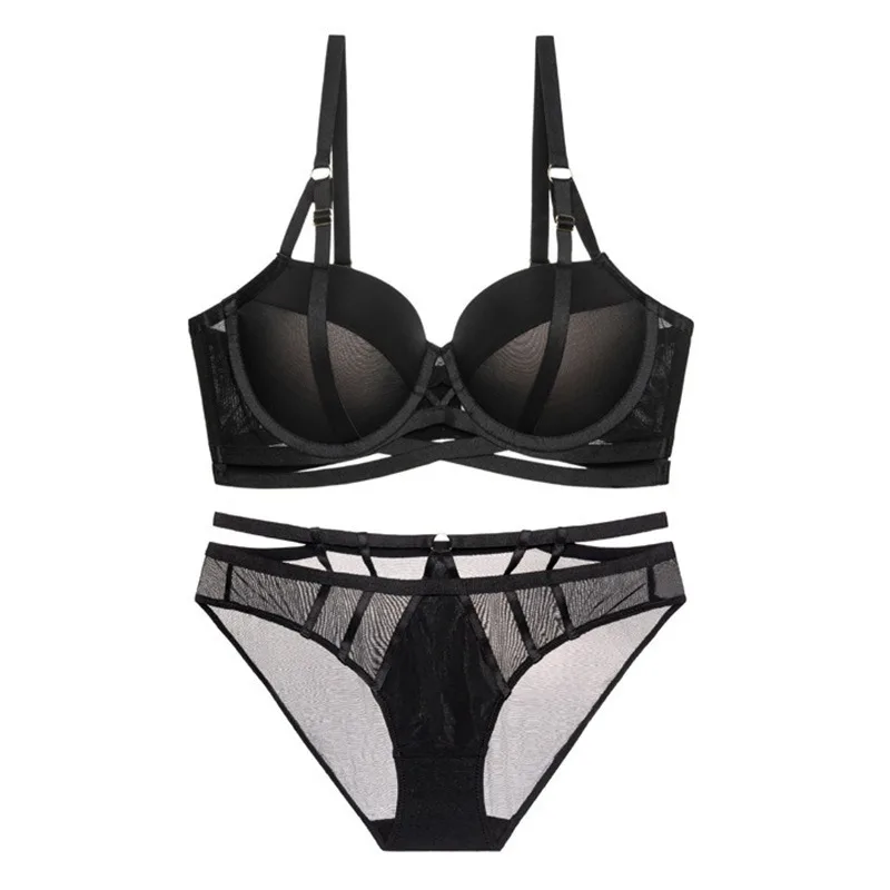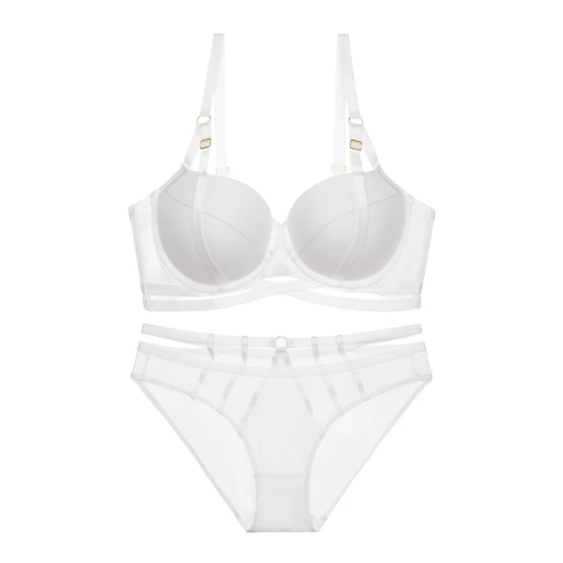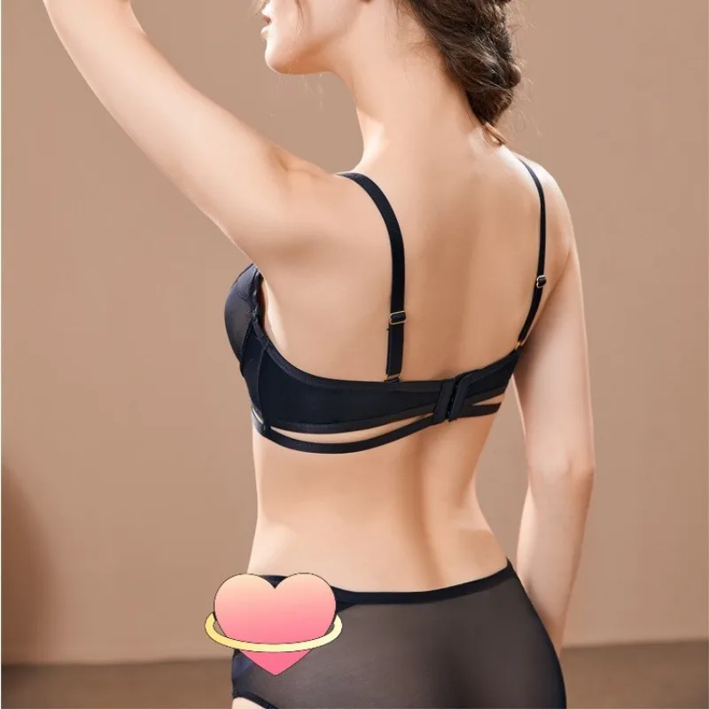 Sexy Mesh Smooth Chest Gathering Bra Women’s Thin Under Thick Mold Cup Lingerie Set Female So...