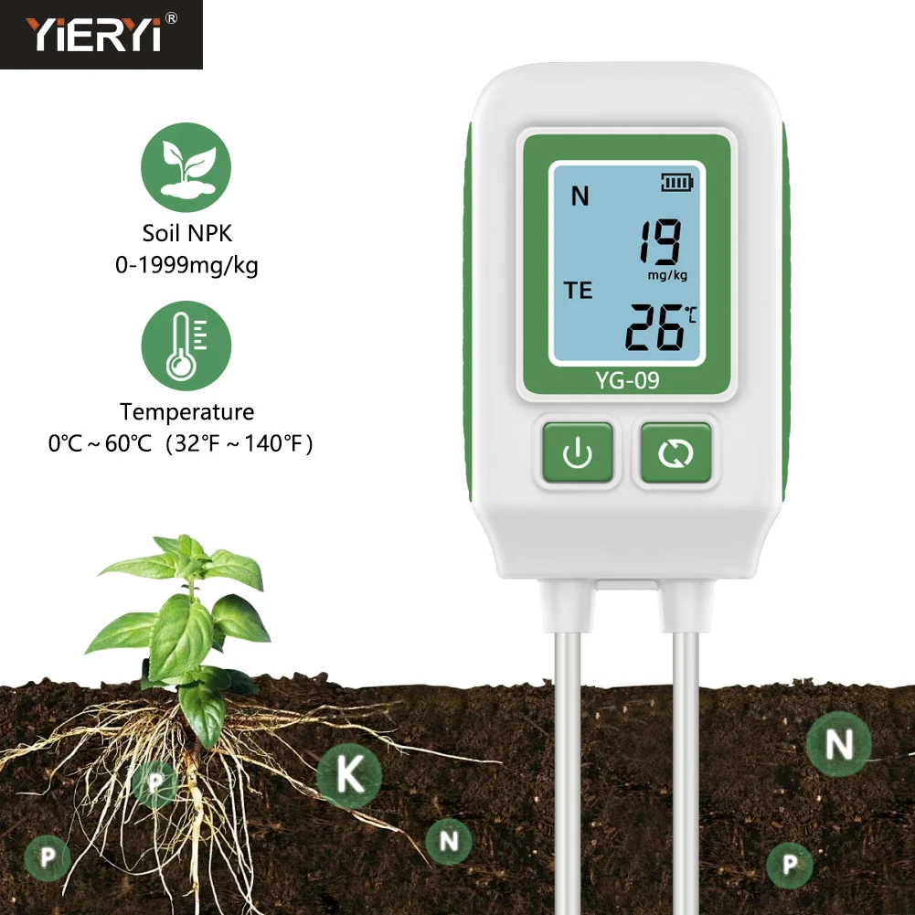 Yieryi 4 in 1 NPK Soil Tester Temp/Nitrogen/Phosphorus/Potassium Sensor Soil Nutrient Meter for Gardening Potted Planting Farm