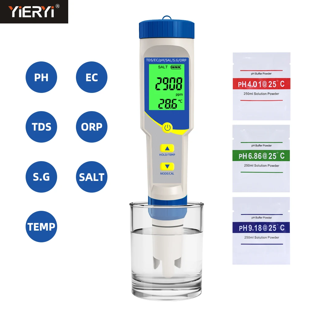 Yieryi 7 in 1 PH Meter 0.01 Resolution High Precision TDS EC ORP ppm Tester Salimeter for Pool Saltwater Aquarium Hydroponics
