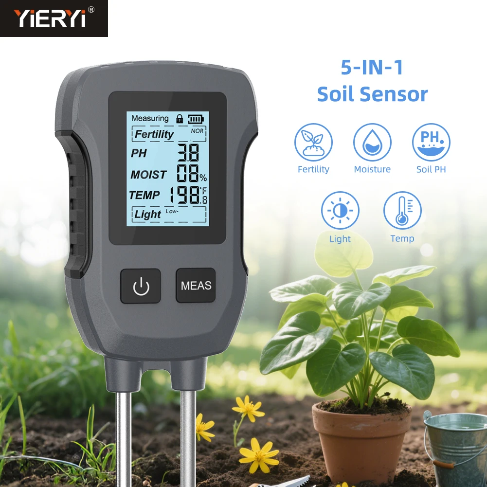 Yieryi Digital 5 in 1 Soil Tester PH/Moisture/Fertility/Temp/Sunlight Intensity Soil Humidity Analyzer for Garden Flower Plants