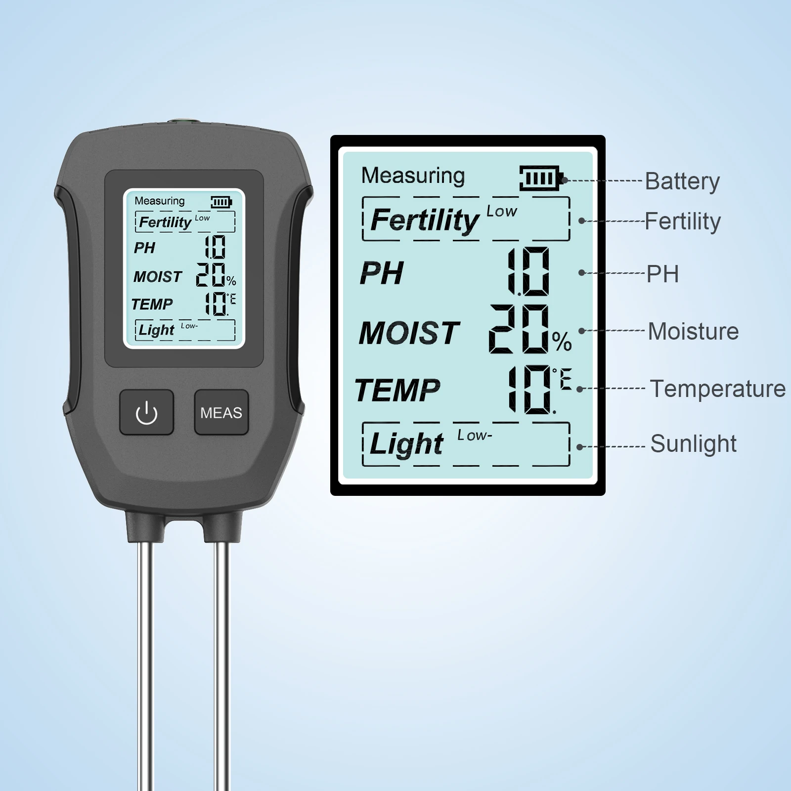 Mulai:4-in-1 Soil Meter PH/Moisture/Sunlight/Temperature Humidometer Acidity Monitor Gardening Farming Pl...