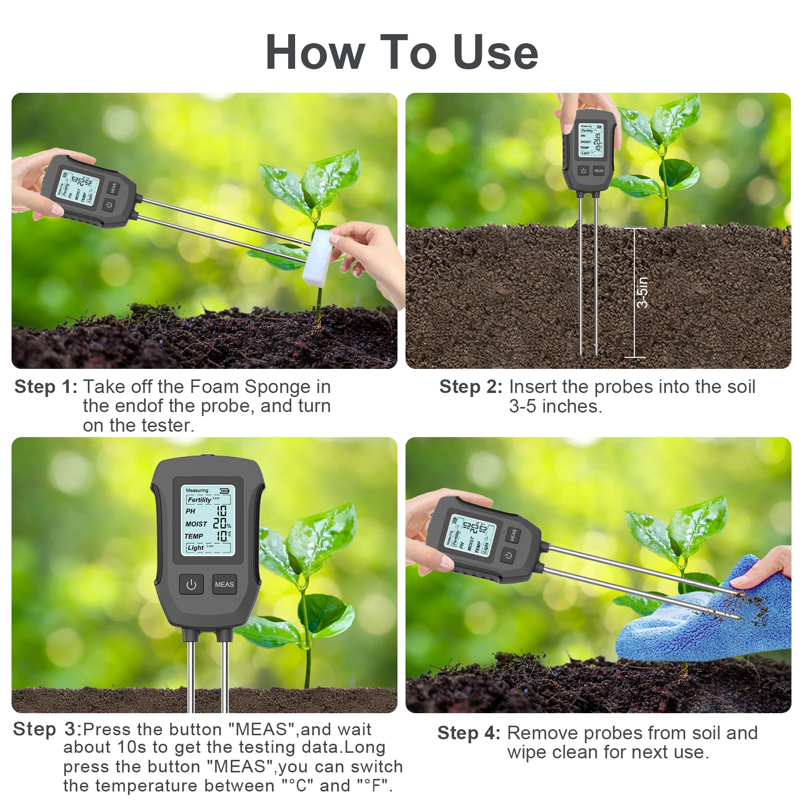 4/5/6 in 1 Soil Tester PH/Moisture/Sunlight/Temp Multifunction Soil pH Meter High Accuracy Sensor f...