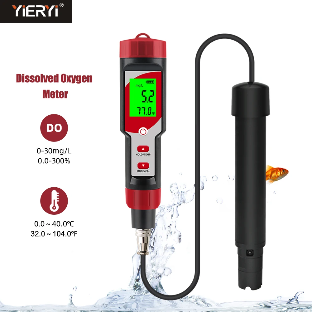 Dissolved Oxygen Meter Range Unit:The Dissolved Oxygen Tester allows you to view dissolved oxygen measurements in % or mg/L. The meter accurately measures dissolved oxygen (DO) in the range of 0.0-300.0% or 0-40 mg/l. The DO probe has a built-in temperature sensor and high-precision gold and silver electrodes that give you faster readings and more consistent results.