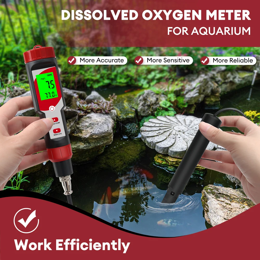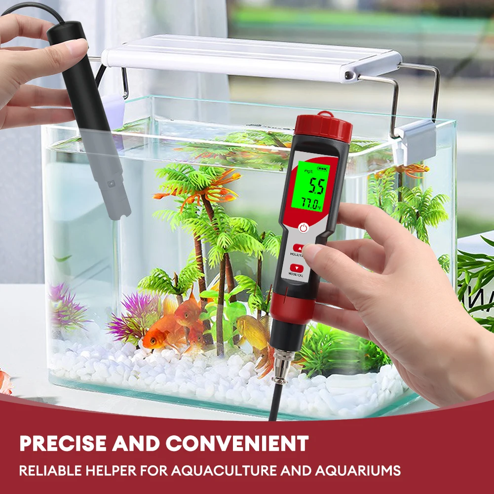 The Dissolved Oxygen Meter accurately measures dissolved oxygen and temperature in a variety of environments, including aquariums, swimming pools, ponds, and aquaculture, and it accurately measures the concentration of oxygen in the water with a resolution of 0.1 mg/L, 0.1%.