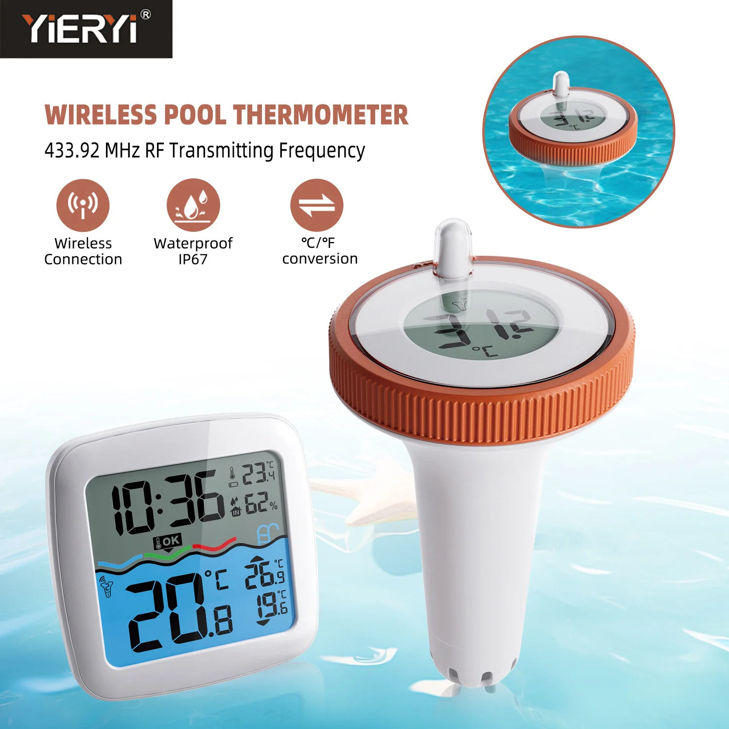 Yieryi Wireless Pool Thermometer Floating with IP67 Waterproof Digital Water Temp Tester for Swimming Pool Aquarium Hot Tub Bath